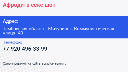 Афродита, секс-шоп по адресу Тамбовская область, Мичуринск, Коммунистическая улица, 43 в дальнейшем Организация, размещена в следующих категориях: