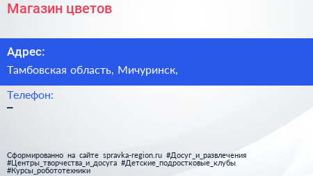 Магазин цветов по адресу Тамбовская область, Мичуринск, в дальнейшем Организация, размещена в следующих категориях: