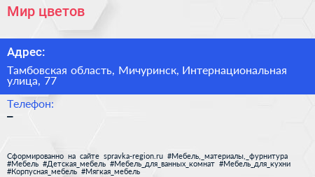 Мир цветов по адресу Тамбовская область, Мичуринск, Интернациональная улица, 77 в дальнейшем Организация, размещена в следующих категориях: