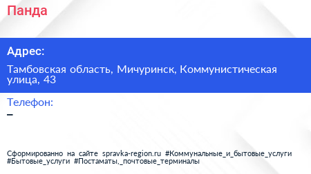 Панда по адресу Тамбовская область, Мичуринск, Коммунистическая улица, 43 в дальнейшем Организация, размещена в следующих категориях: