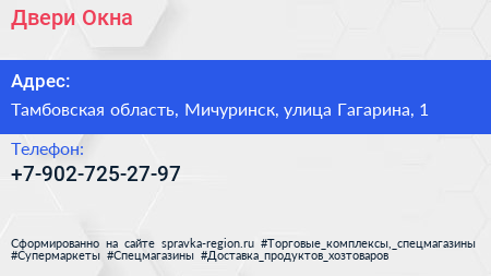 Двери-Окна по адресу Тамбовская область, Мичуринск, улица Гагарина, 1 в дальнейшем Организация, размещена в следующих категориях: