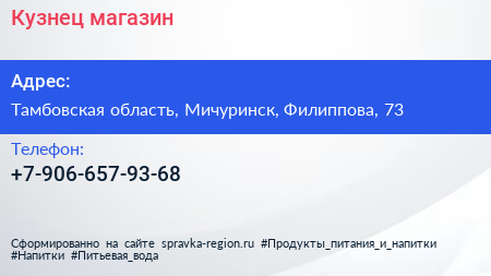 Кузнец, магазин по адресу Тамбовская область, Мичуринск, Филиппова, 73 в дальнейшем Организация, размещена в следующих категориях: