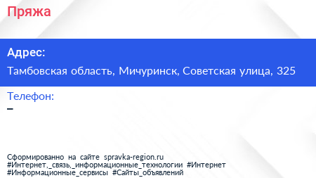Пряжа по адресу Тамбовская область, Мичуринск, Советская улица, 325 в дальнейшем Организация, размещена в следующих категориях: