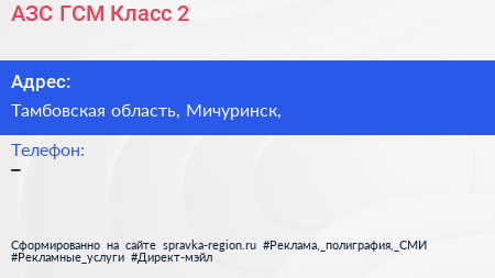 АЗС ГСМ Класс №2 по адресу Тамбовская область, Мичуринск, в дальнейшем Организация, размещена в следующих категориях: