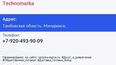 Technomarka по адресу Тамбовская область, Мичуринск, в дальнейшем Организация, размещена в следующих категориях: