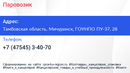 Паровозик по адресу Тамбовская область, Мичуринск, ГОУНПО ПУ-37, 28 в дальнейшем Организация, размещена в следующих категориях:
