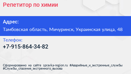 Репетитор по химии по адресу Тамбовская область, Мичуринск, Украинская улица, 48 в дальнейшем Организация, размещена в следующих категориях: