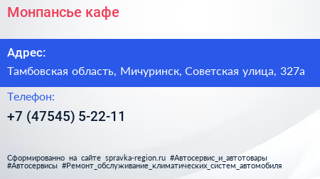 Монпансье, кафе по адресу Тамбовская область, Мичуринск, Советская улица, 327а в дальнейшем Организация, размещена в следующих категориях: