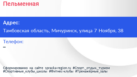 Пельменная по адресу Тамбовская область, Мичуринск, улица 7 Ноября, 38 в дальнейшем Организация, размещена в следующих категориях: