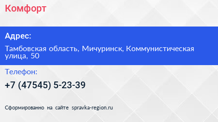 Комфорт по адресу Тамбовская область, Мичуринск, Коммунистическая улица, 50 в дальнейшем Организация, размещена в следующих категориях: