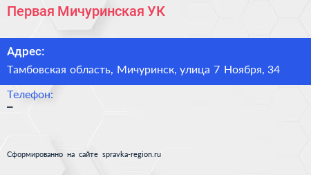 Первая Мичуринская УК по адресу Тамбовская область, Мичуринск, улица 7 Ноября, 34 в дальнейшем Организация, размещена в следующих категориях: