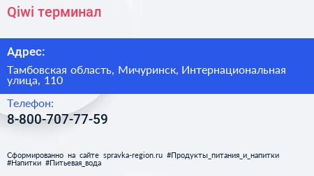 Qiwi, терминал по адресу Тамбовская область, Мичуринск, Интернациональная улица, 110 в дальнейшем Организация, размещена в следующих категориях: