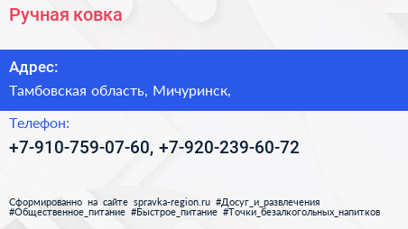 Ручная ковка по адресу Тамбовская область, Мичуринск, в дальнейшем Организация, размещена в следующих категориях: