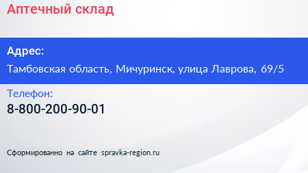Аптечный склад по адресу Тамбовская область, Мичуринск, улица Лаврова, 69/5 в дальнейшем Организация, размещена в следующих категориях: