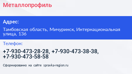 Металлопрофиль по адресу Тамбовская область, Мичуринск, Интернациональная улица, 136 в дальнейшем Организация, размещена в следующих категориях: