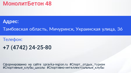 МонолитБетон 48 по адресу Тамбовская область, Мичуринск, Украинская улица, 36 в дальнейшем Организация, размещена в следующих категориях: