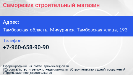 Саморезик, строительный магазин по адресу Тамбовская область, Мичуринск, Тамбовская улица, 193 в дальнейшем Организация, размещена в следующих категориях: