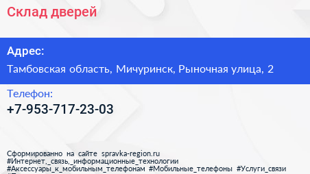 Склад дверей по адресу Тамбовская область, Мичуринск, Рыночная улица, 2 в дальнейшем Организация, размещена в следующих категориях: