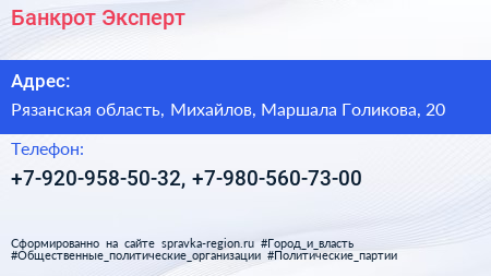Банкрот-Эксперт по адресу Рязанская область, Михайлов, Маршала Голикова, 20 в дальнейшем Организация, размещена в следующих категориях: