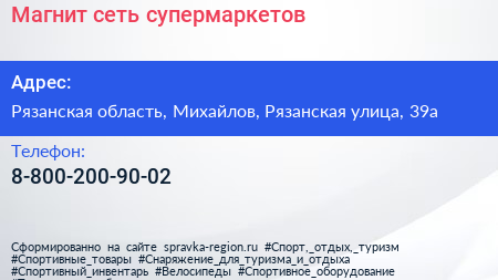Магнит, сеть супермаркетов по адресу Рязанская область, Михайлов, Рязанская улица, 39а в дальнейшем Организация, размещена в следующих категориях: