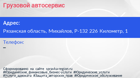 Грузовой автосервис по адресу Рязанская область, Михайлов, Р-132 226 Километр, 1 в дальнейшем Организация, размещена в следующих категориях: