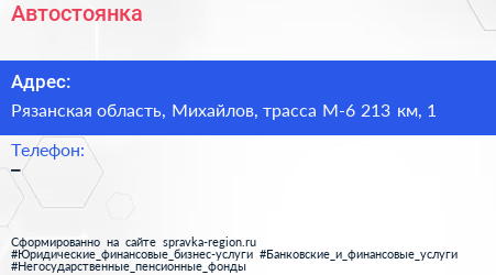 Автостоянка по адресу Рязанская область, Михайлов, трасса М-6 213 км, 1 в дальнейшем Организация, размещена в следующих категориях: