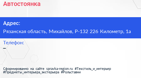 Автостоянка по адресу Рязанская область, Михайлов, Р-132 226 Километр, 1а в дальнейшем Организация, размещена в следующих категориях: