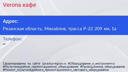 Verona, кафе по адресу Рязанская область, Михайлов, трасса Р-22 209 км, 1а в дальнейшем Организация, размещена в следующих категориях: