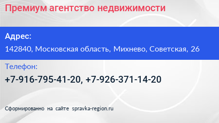 Премиум, агентство недвижимости по адресу 142840, Московская область, Михнево, Советская, 26 в дальнейшем Организация, размещена в следующих категориях: