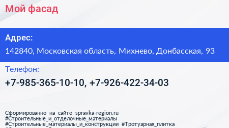 Мой фасад по адресу 142840, Московская область, Михнево, Донбасская, 93 в дальнейшем Организация, размещена в следующих категориях: