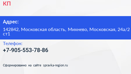 КП по адресу 142842, Московская область, Михнево, Московская, 24а/2 ст1 в дальнейшем Организация, размещена в следующих категориях: