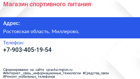 Магазин спортивного питания по адресу Ростовская область, Миллерово, в дальнейшем Организация, размещена в следующих категориях: