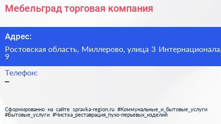 Мебельград, торговая компания по адресу Ростовская область, Миллерово, улица 3 Интернационала, 9 в дальнейшем Организация, размещена в следующих категориях: