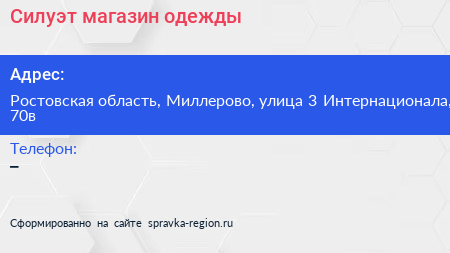 Силуэт, магазин одежды по адресу Ростовская область, Миллерово, улица 3 Интернационала, 70в в дальнейшем Организация, размещена в следующих категориях: