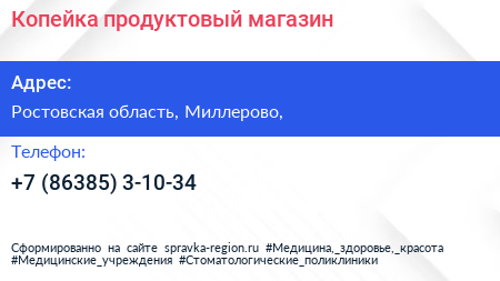 Копейка, продуктовый магазин по адресу Ростовская область, Миллерово, в дальнейшем Организация, размещена в следующих категориях: