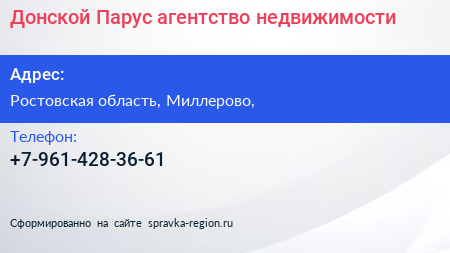 Донской Парус, агентство недвижимости по адресу Ростовская область, Миллерово, в дальнейшем Организация, размещена в следующих категориях: