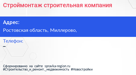 Строймонтаж, строительная компания по адресу Ростовская область, Миллерово, в дальнейшем Организация, размещена в следующих категориях: