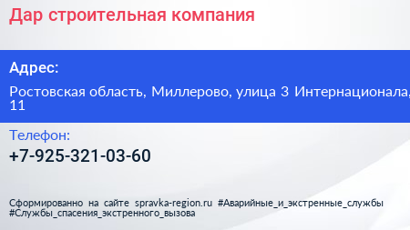 Дар, строительная компания по адресу Ростовская область, Миллерово, улица 3 Интернационала, 11 в дальнейшем Организация, размещена в следующих категориях: