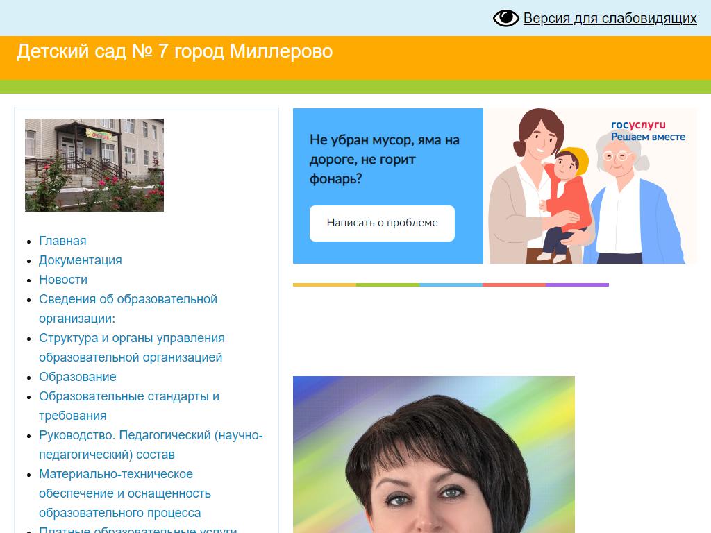 Детский сад №7 по адресу Ростовская область, Миллерово, улица Седова, 48/1/3 в дальнейшем Организация, размещена в следующих категориях: