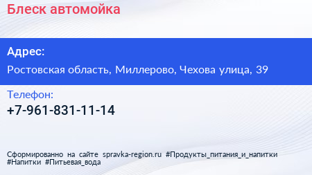 Блеск, автомойка по адресу Ростовская область, Миллерово, Чехова улица, 39 в дальнейшем Организация, размещена в следующих категориях: