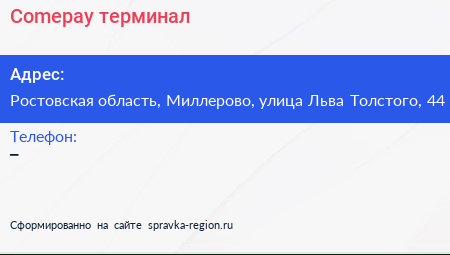 Comepay, терминал по адресу Ростовская область, Миллерово, улица Льва Толстого, 44 в дальнейшем Организация, размещена в следующих категориях: