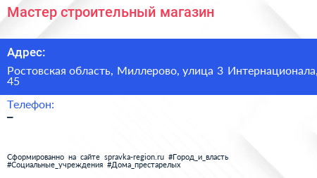 Мастер, строительный магазин по адресу Ростовская область, Миллерово, улица 3 Интернационала, 45 в дальнейшем Организация, размещена в следующих категориях: