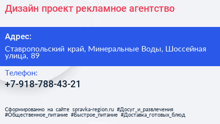 Дизайн проект, рекламное агентство по адресу Ставропольский край, Минеральные Воды, Шоссейная улица, 89 в дальнейшем Организация, размещена в следующих категориях:
