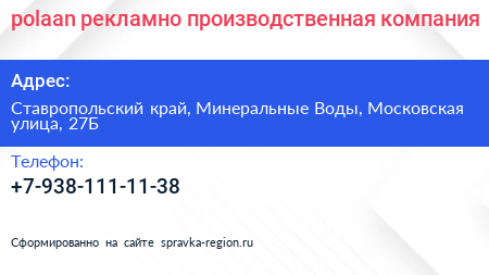 polaan, рекламно-производственная компания по адресу Ставропольский край, Минеральные Воды, Московская улица, 27Б в дальнейшем Организация, размещена в следующих категориях: