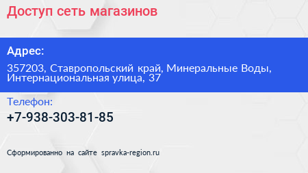 Доступ, сеть магазинов по адресу 357203, Ставропольский край, Минеральные Воды, Интернациональная улица, 37 в дальнейшем Организация, размещена в следующих категориях:
