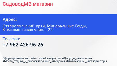 СадоводМВ, магазин по адресу Ставропольский край, Минеральные Воды, Комсомольская улица, 22 в дальнейшем Организация, размещена в следующих категориях: