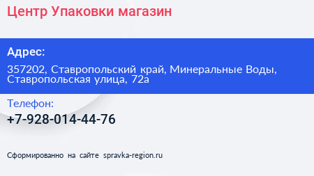 Центр Упаковки, магазин по адресу 357202, Ставропольский край, Минеральные Воды, Ставропольская улица, 72а в дальнейшем Организация, размещена в следующих категориях: