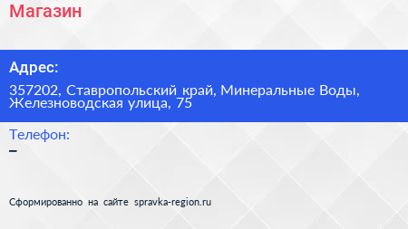 Магазин по адресу 357202, Ставропольский край, Минеральные Воды, Железноводская улица, 75 в дальнейшем Организация, размещена в следующих категориях: