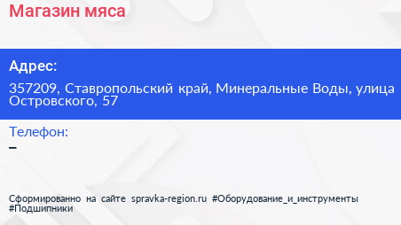 Магазин мяса по адресу 357209, Ставропольский край, Минеральные Воды, улица Островского, 57 в дальнейшем Организация, размещена в следующих категориях: