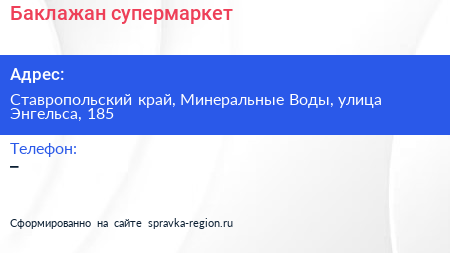 Баклажан, супермаркет по адресу Ставропольский край, Минеральные Воды, улица Энгельса, 185 в дальнейшем Организация, размещена в следующих категориях: